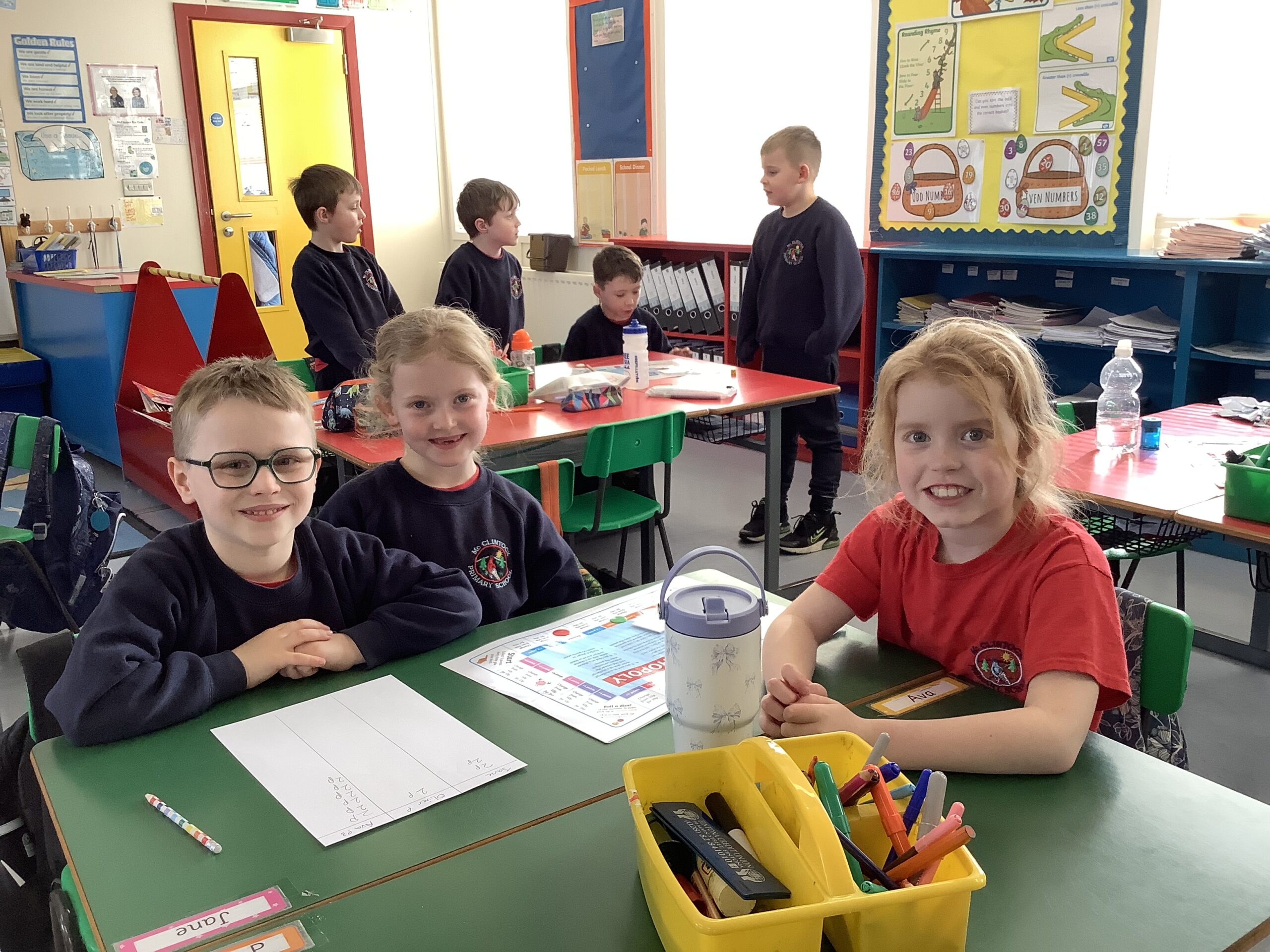 As part of Activity Based Learning throughout the school, pupils participate in Mental Maths Mayhem with their class peers each term. P3 and P4 pupils have been learning about money, odd and even numbers, using mathematical symbols and rounding numbers to the nearest ten in practical ways through discussion and games.